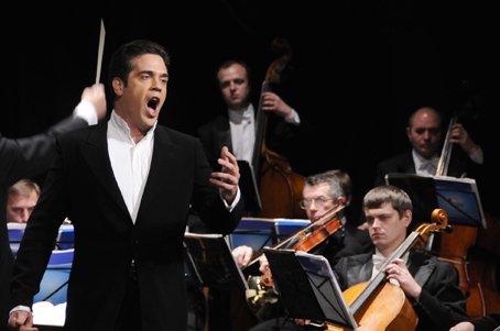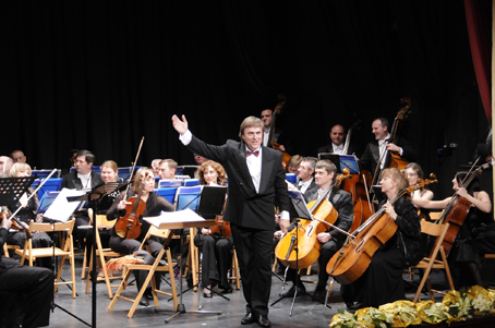 El concierto fue sencillamente redondo, sin rincones que ensombrecer sino todo luminoso, diáfano, brillante. Vladimir Sheiko es un director sobre todo riguroso, mas muy ameno, que llega al público y que da la impresión de que no está haciendo ningún alarde, aunque en realidad toda su actuación es eso: un alarde de conocimiento, de gusto exquisito para saber leer lo que ha querido decir Tchaykosky, Strauss, Verdi, Puccini, Lisenco, Lehar, Sorozábal, Bizet, Cardillo y Donizetti, pues estos conformaron el contenido de la velada. No podía ser menos que la versión que nos ofreció de las obras de sus paisanos: “Eugene Oneguin”, “La Bella Durmiente”, “Taras Bulba” y fuera de programa la conocida melodía popular rusa “Achicharnia”, conocida por estos lares como “Ojos Negros”. Como no podía ser menos tuvo su gesto simpático y cómico con la correspondiente y sorpresiva caída del cielo del pato de turno pelado –por supuesto- y que ya hemos visto en anteriores conciertos de Año Nuevo a otros directores.