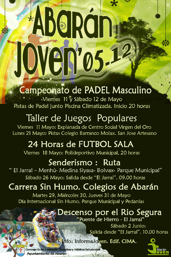 La Concejalía de Juventud, Deportes y Hábitos Saludables organizan ,ABARAN JOVEN ’05.12 durante las próximas fechas, para inscripciones y más información: