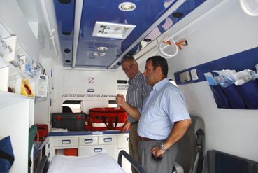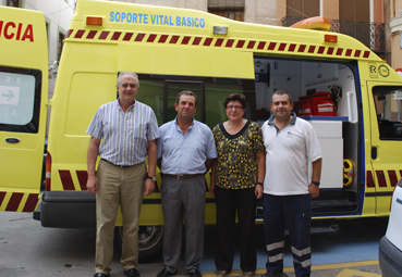 El alcalde de Abarán, Antonio Eugenio Gómez, la concejal de Sanidad, Mª Carmen Tornero y el gerente de la empresa concesionaria de ambulancias Vega del Segura, Juan Lucas, han presentado la nueva ambulancia de soporte vital que prestará servicio en el municipio de Abarán las 24 horas, con equipamiento completo y medicalizada. Esta ambulancia es de uso exclusivo para Abarán y a ella se puede acceder a través del 112 o del Centro de Salud del municipio “Jesús Humberto Gómez Tornero”. Una de las novedades que presenta este medio es un sistema informatizado de la situación y el estado del paciente, además de un GPS que permite la localización del vehículo en cualquier punto.