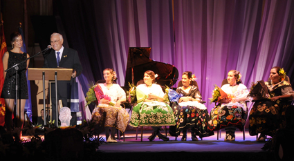 La presentadora Azucena Marín condujo el acto donde las cinco candidatas a Reina de las Fiestas lucieron trajes regionales murcianos (Melodi Carrillo, Isabel Medrano, Teresa Egea, María Yelo y Miriam Ibáñez). El alcalde de Abarán, Antonio Eugenio Gómez, entregó una insignia de oro al pregonero y la concejal de Cultura, Mercedes de la Fuente Tornero le hizo entrega de un pergamino como recuerdo por haber pregonado las fiestas de Abarán. Sus nietos y su esposa también quisieron darle una sorpresa y subieron al escenario a regalarle besos y abrazos. Un emocionado pregonero recibía a continuación a dos representantes del equipo humano de la empresa que regenta, Grupo Europa. Al finalizar el acto, el cantante valenciano Francisco cautivó al público con un concierto de más de una hora de duración.