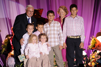 Miguel López con su esposa y nietos