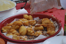 Escaldados, almendrados, magdalenas, mazapanes, brazos de gitano, toñas, empanadillas, picardías, bombones, buñuelos, paparajotes, tortas de pringue, tortas de cabello de ángel, tazas de chocolate y té constituían los principales sabores y aromas de la primera mañana navideña de este mes de diciembre, al son de villancicos populares.