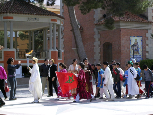 Tras la lectura del manifiesto se procedió al encendido de la llama olímpica municipal para la integración, que inauguró <<una fiesta de hermandad que siente las bases para una convivencia en paz, respeto e intercambio de culturas>>. La antorcha, que partió desde la Ermita recorrió las calles principales del municipio finalizando en el polideportivo municipal “Príncipe de Asturias”. Una vez allí, tuvo lugar una muestra de bailes típicos de diferentes culturas y a continuación se celebró un campeonato de fútbol. La entrega de premios tuvo lugar a las 18.30h.