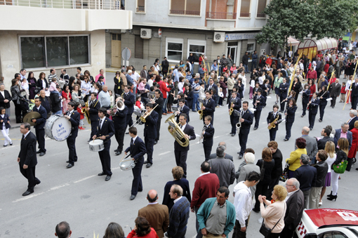 Abarán celebró la procesión de las Palmas que tiene lugar en el municipio Domingo de Ramos. “La burrica” salió desde la iglesia de San Juan Bautista y concluyó en la parroquia de San Pablo. La hermandad de la Verónica, la Leva, es la que cada año porta el trono que representa la entrada de Jesús en la ciudad hebrea y la única que desfila en esta procesión.