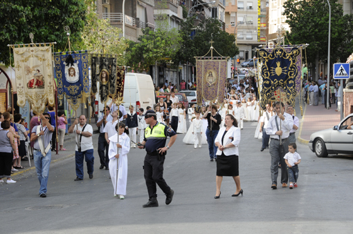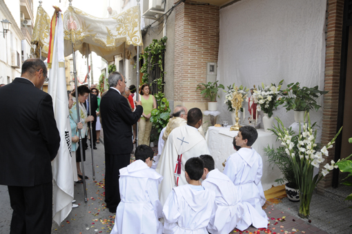La procesión del Corpus Christi recorrió el pasado domingo 14 de junio las principales calles de la localidad acompañada de fieles devotos entre los que se encontraban los niños que este año han tomado la Primera Comunión. Los vecinos de la localidad engalanaron balcones y ventanas para el paso de la procesión, con hiedras, baladres y adornos florales. Además a pie de calle se dispusieron pequeños altares para rendir culto a la fiesta del Corpus que representa el sentido de la Eucaristía.