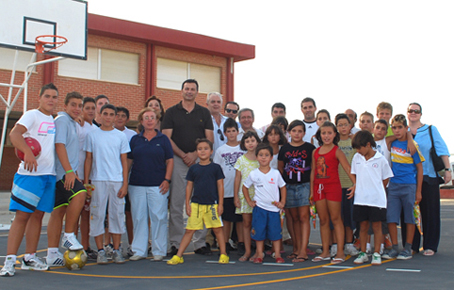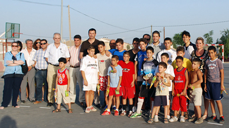 El alcalde de Abarán, Antonio Eugenio Gómez, y el Director General de Deportes, Antonio Peñalver, acompañados del concejal de Deportes del Ayuntamiento de Abarán, Federico García Montiel, así como de los directores de los colegios Santiago Apóstol y San José Artesano, inauguraron las pistas polideportivas de las pedanías Hoya del Campo, San José Artesano y Barriada Virgen del Oro.
