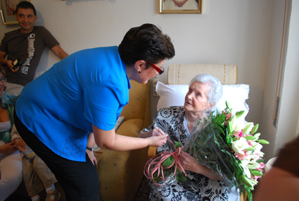 El alcalde de Abarán, Antonio Eugenio Gómez, y la concejal de Bienestar Social, María del Carmen Tornero, felicitaron a Doña Mercedes Carrasco González el pasado sábado, dos días antes de cumplir los 100 años. Rodeada de familiares y amigos, Mercedes recibió emocionada una placa y un ramo de flores en nombre del Ayuntamiento de Abarán por su 100 cumpleaños.