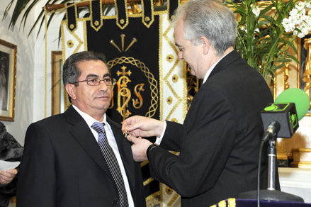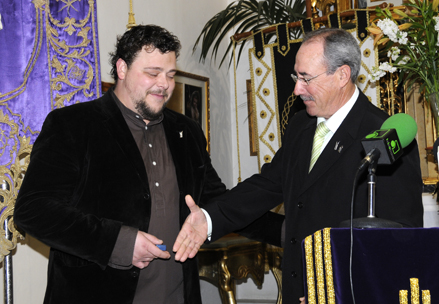 Carmelo Gómez, como presidente de la Hermandad del Silencio y Cristo de Medinaceli, entregó una placa al vicepresidente Jose Antonio Gómez en reconocimiento por su dedicación y servicios prestados. Jose Antonio hizo extensivo este reconocimiento con un fuerte abrazo hacia Carmelo y al secretario de la Hermandad Carlos Trigueros.